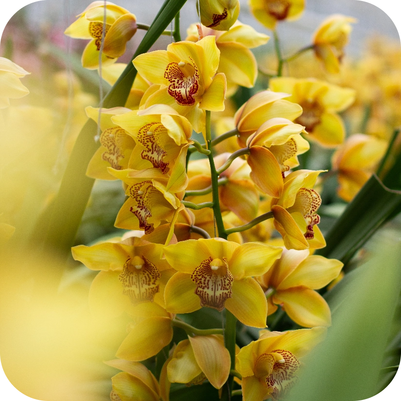 Een cymbidiumtak blijft gemiddeld twee tot drie weken goed, soms zelfs langer. Dankzij de stevige bloemen behoudt hij zijn vorm en kleur, ook in grotere arrangementen of presentaties. Kies je voor onze snij-cymbidium, dan kies je voor een bloem die niet alleen opvalt, maar ook lang blijft schitteren.